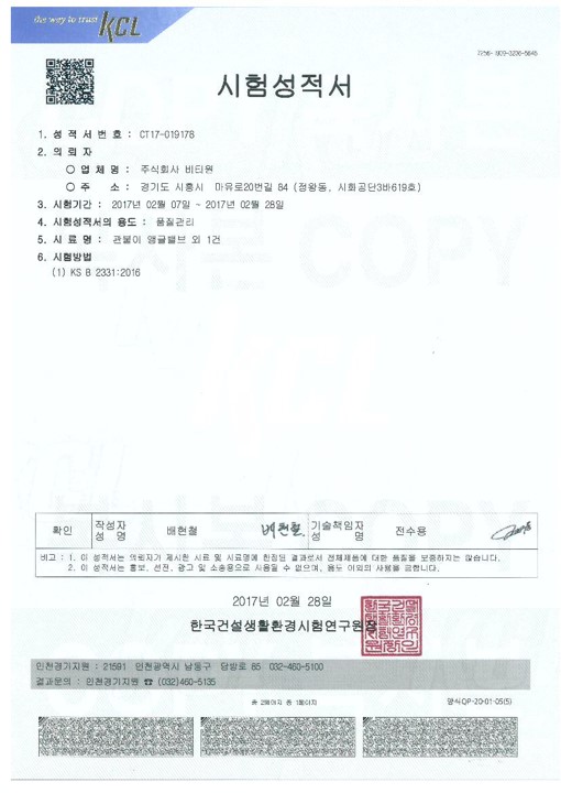 Certification/License/Report Greeting History Organization chart Certification/License/Report Location Test report Endurance function test of angle valve/ width faucet 페이지 정보 작성자 최고관리자 COMMENT 0 VIEW 1,244 TIME 작성일 18-06-12 10:03 본문 Endurance function test of angle valve/ width faucet LIST PREVLetter of a patent 18.06.12 NEXTLeaching test 18.06.12