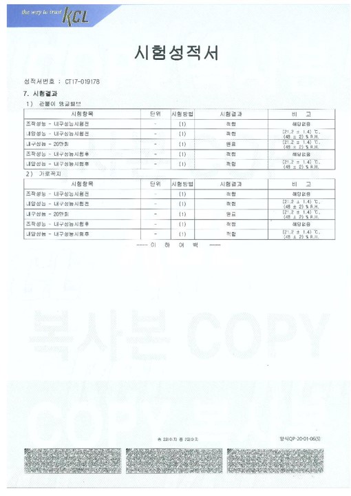 Test report Endurance function test of angle valve/ width faucet 페이지 정보 작성자 최고관리자 COMMENT 0 VIEW 1,244 TIME 작성일 18-06-12 10:03 본문 Endurance function test of angle valve/ width faucet LIST PREVLetter of a patent 18.06.12 NEXTLeaching test 18.06.12